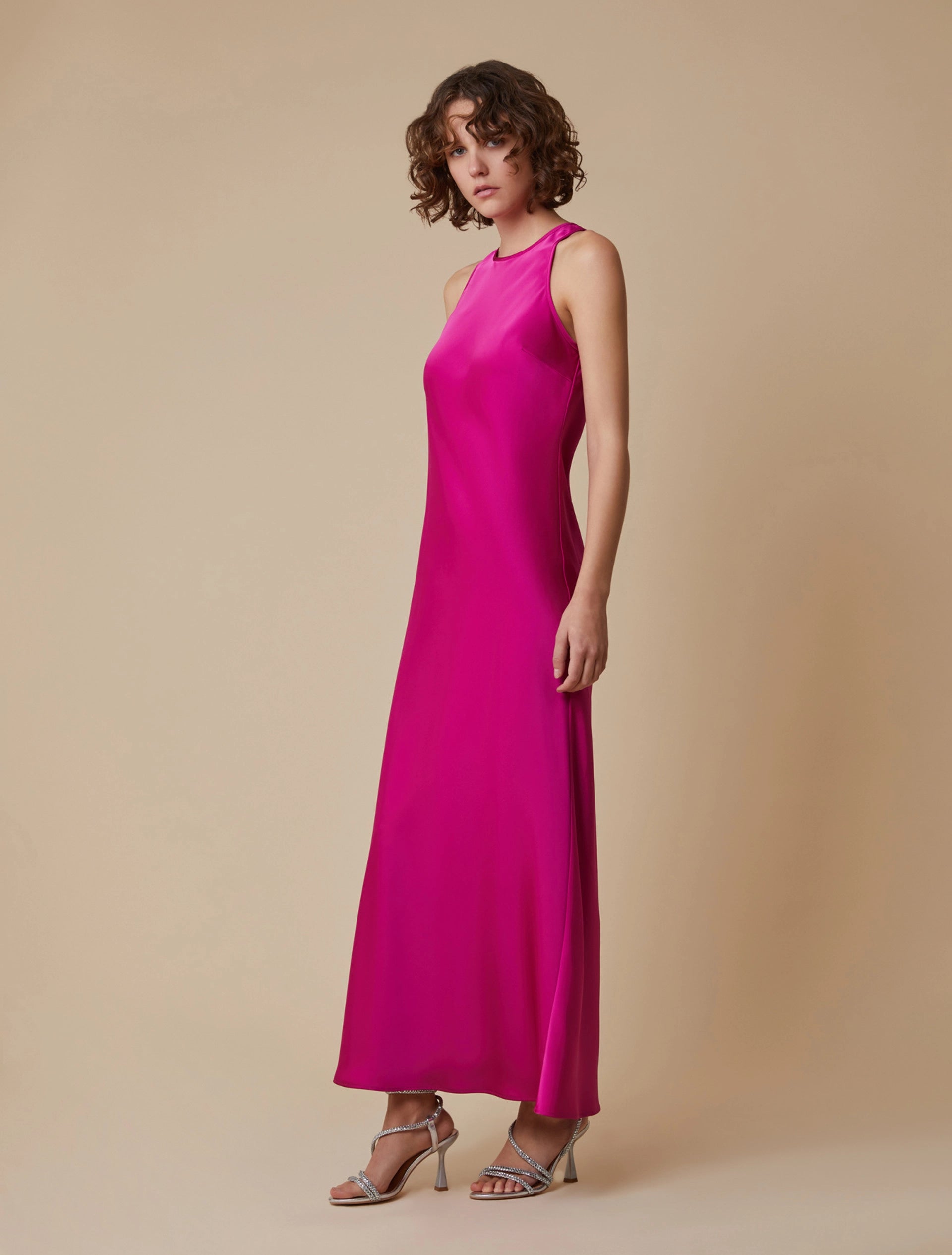 Colore vibrante e silhouette femminile per il party dress in raso: stile assoluto, da sfoggiare ora e ancora.