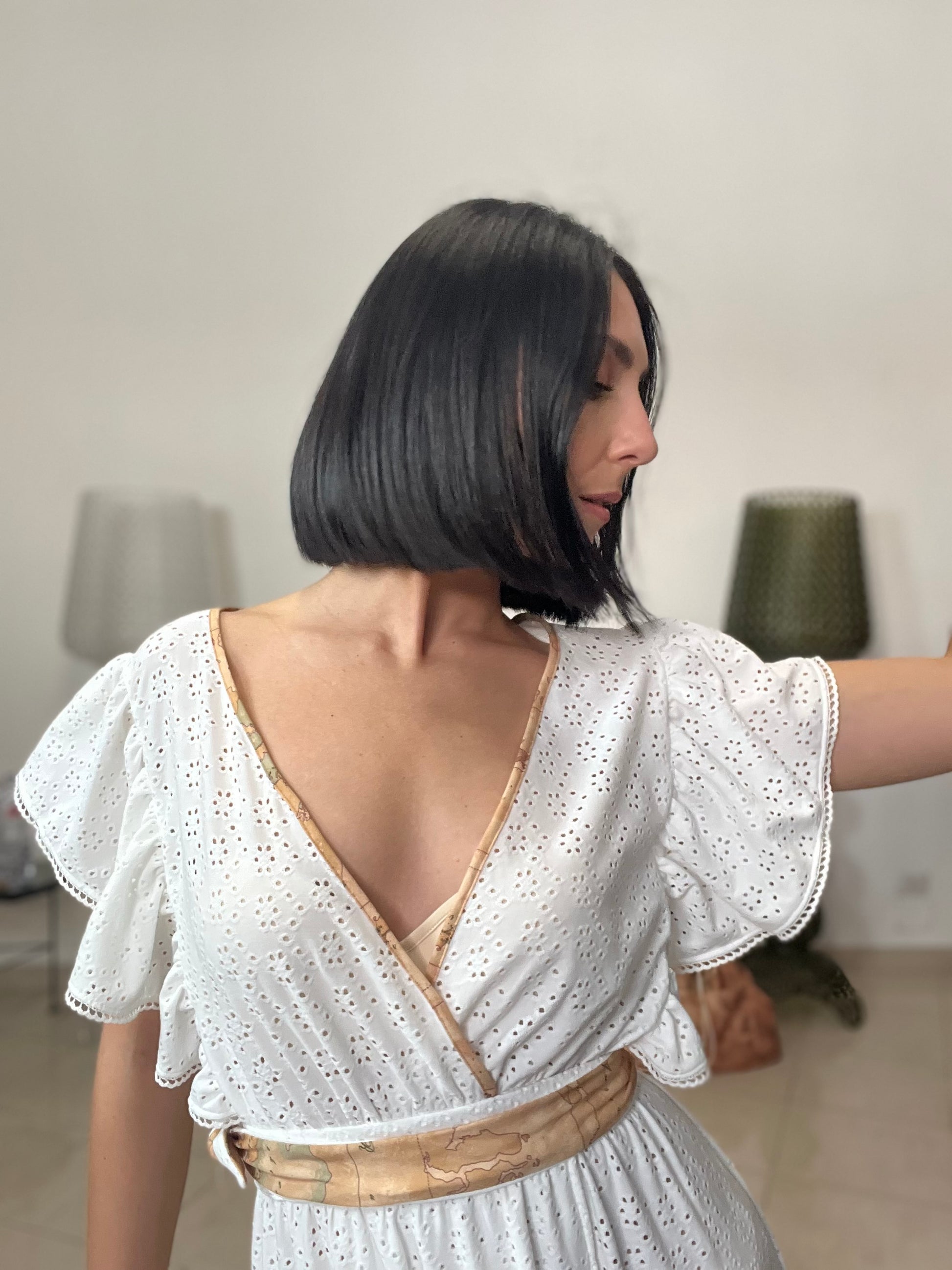La combinazione di lusso e leggerezza che contraddistingue la linea Luxury Breeze si riflette in questo abito portafoglio in tessuto traforato: le maniche e lo scollo profondo a V creano un design romantico e femminile, reso inconfondibile dal piping con stampa Geo Classic. Il modello si allaccia sul davanti.