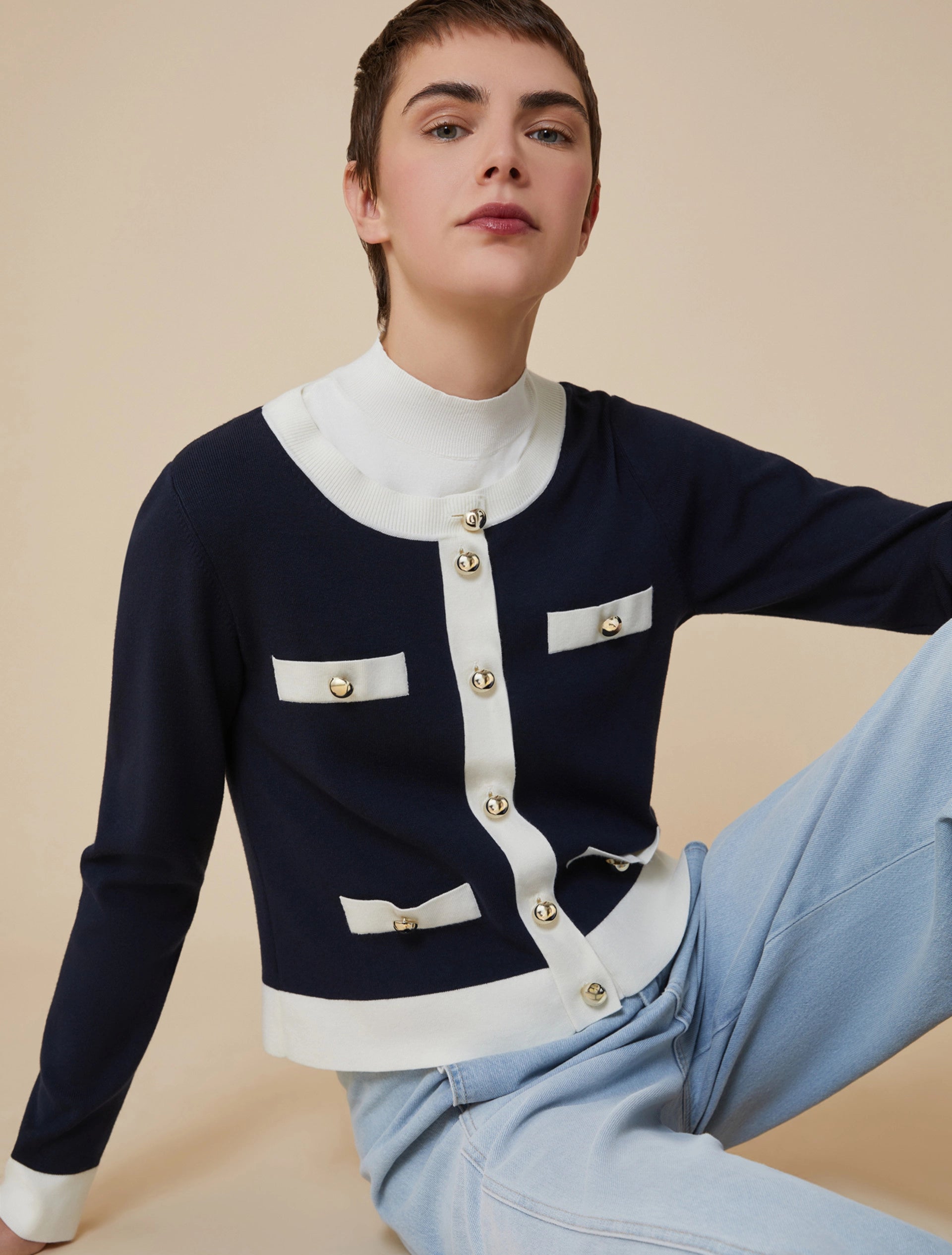 Très chic, il cardigan d’ispirazione French couture sarà perfetto per gli abbinamenti classici e cool per quelli informali.