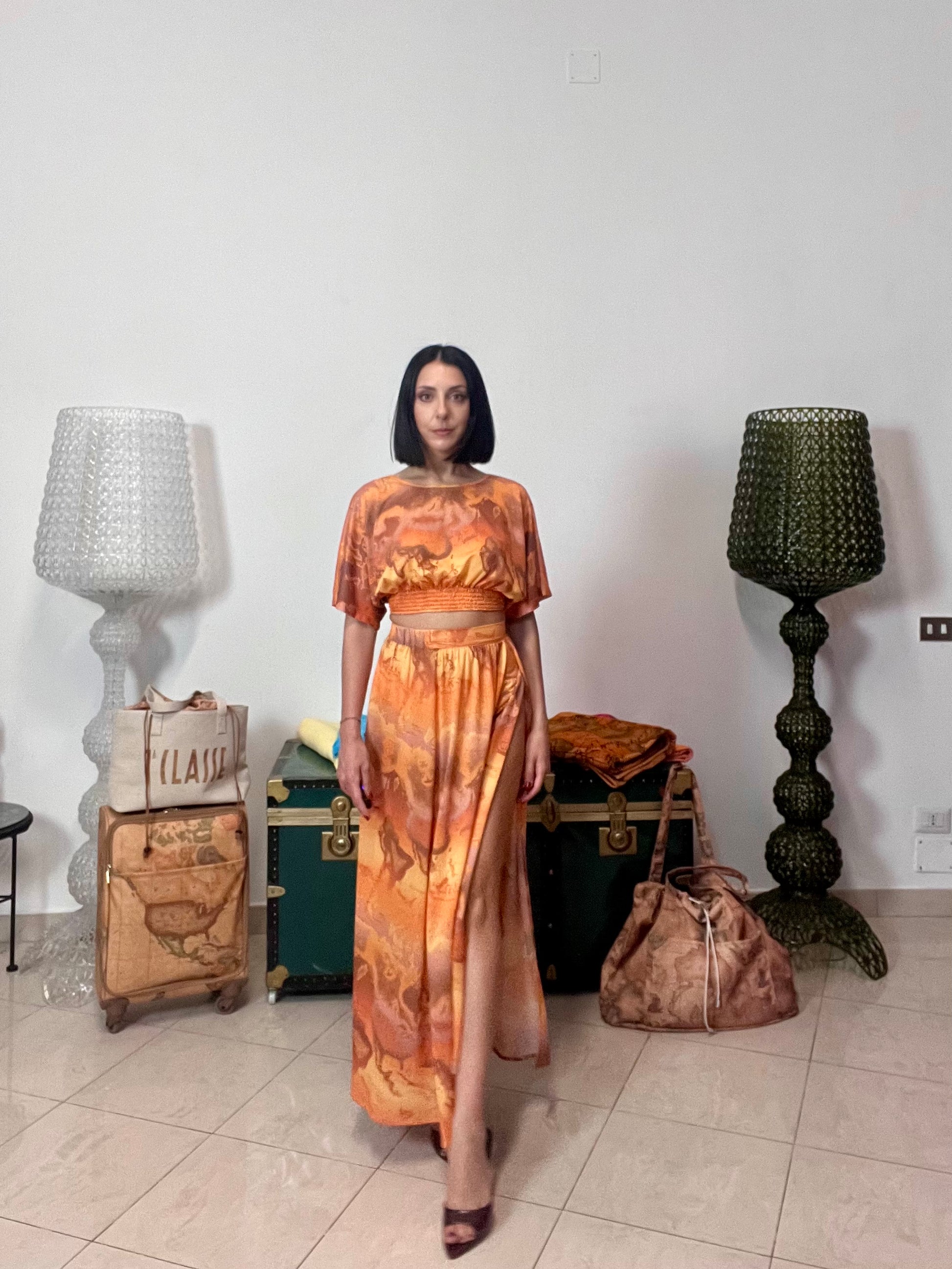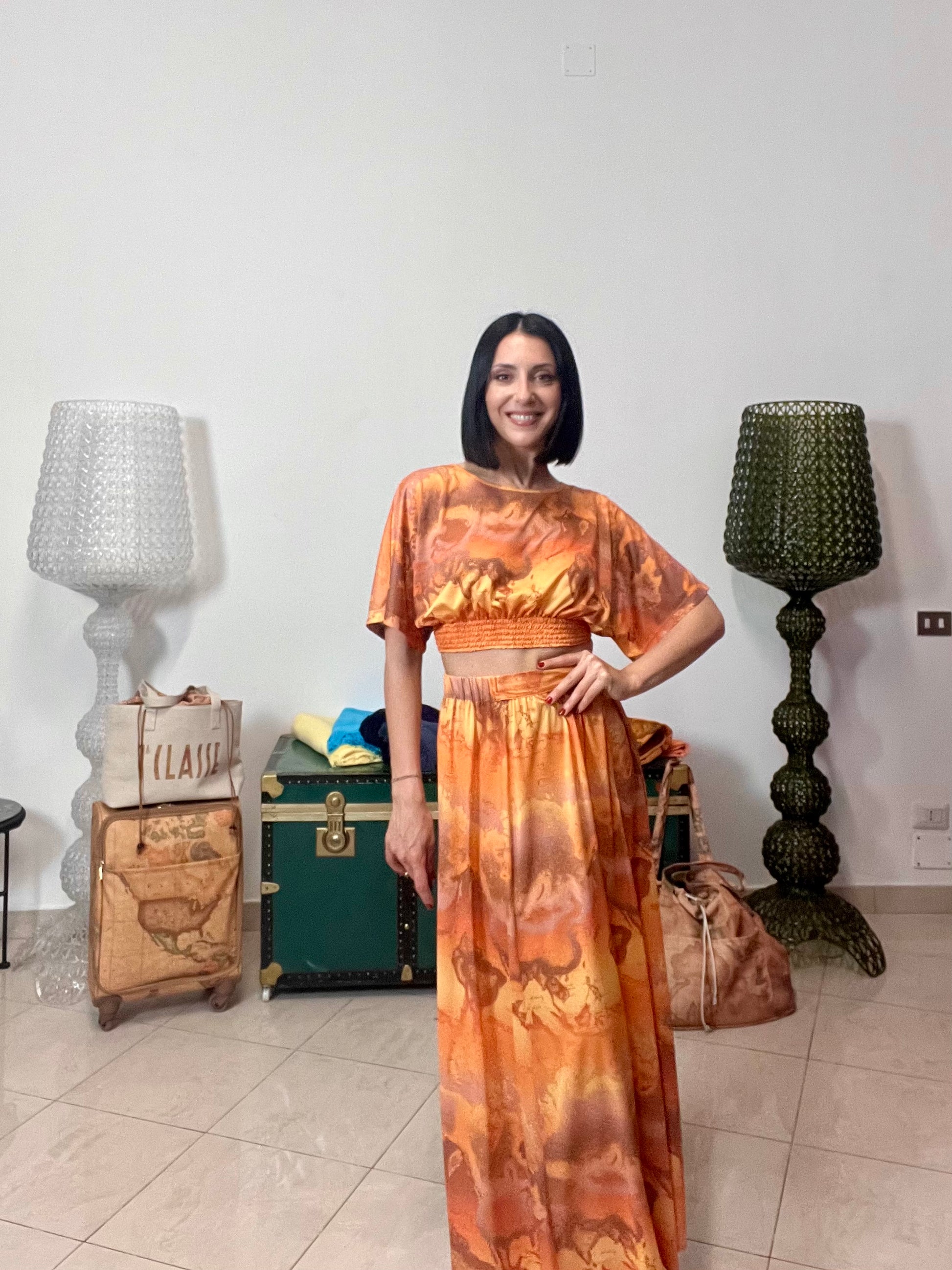 Coordinato Geo Savana della Linea beachwear disponibile presso Boutique Benny Via Mazzini 28, Battipaglia, rivenditore autorizzato Alviero Martini prima classe.