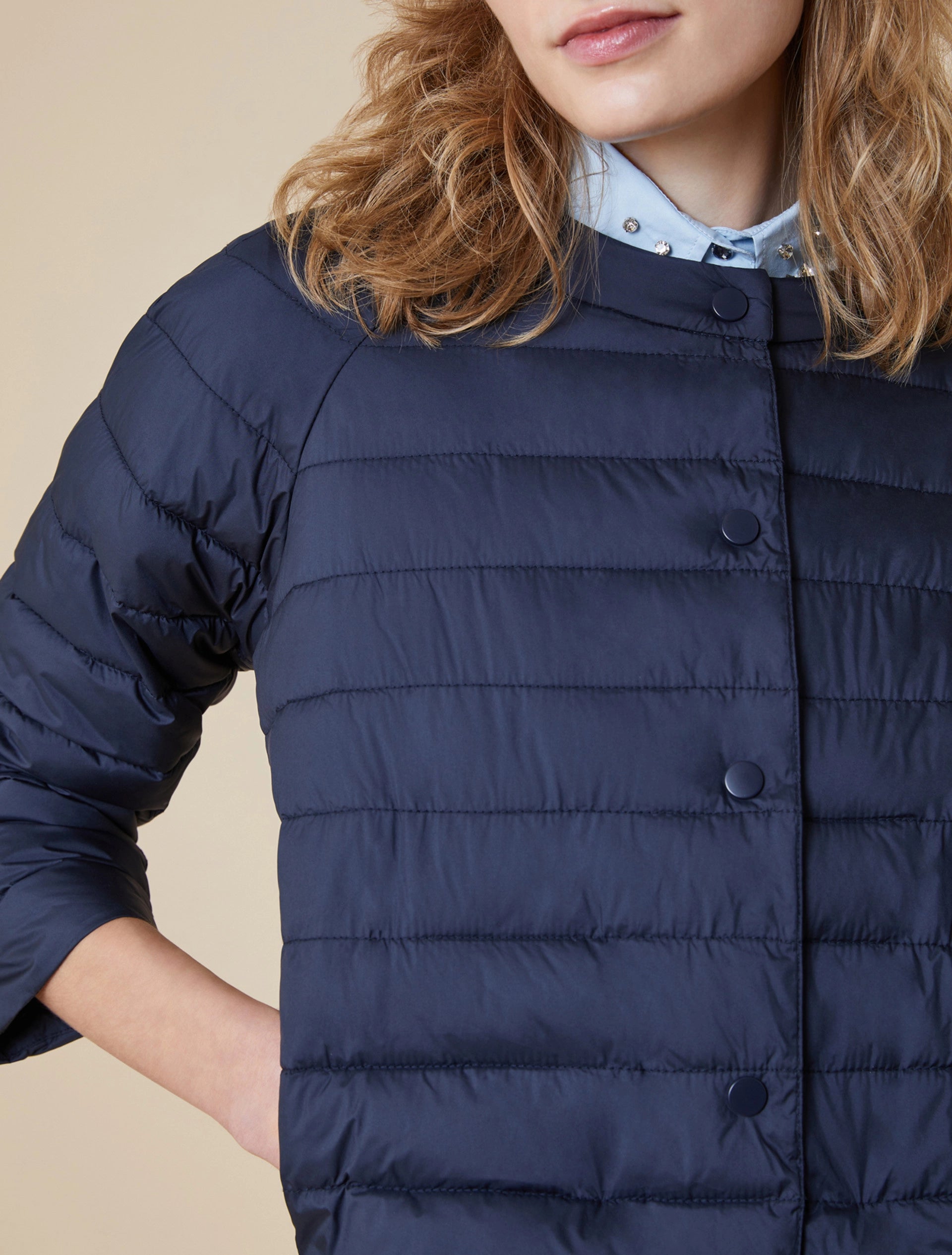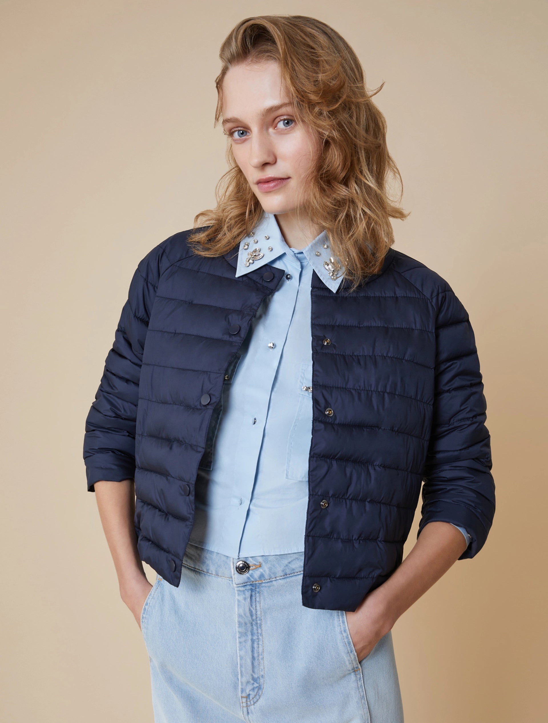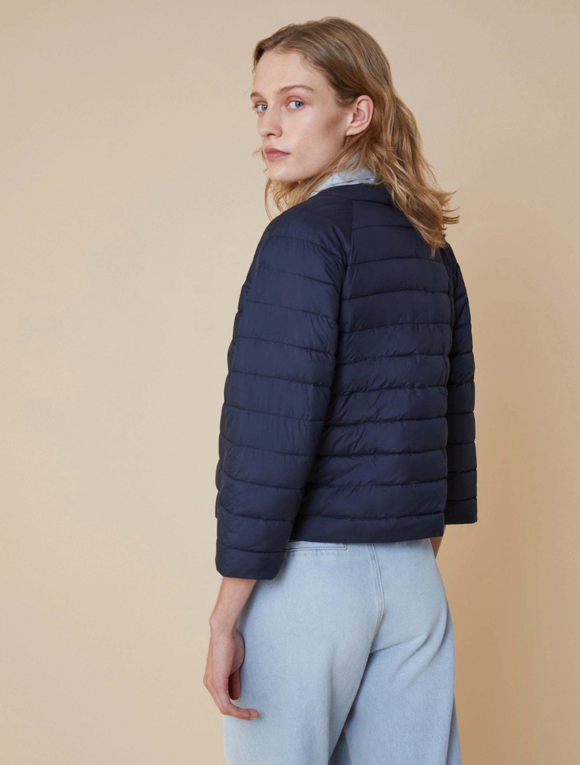 La giacca puffer superleggera sfoggia una silhouette bon chic e passa con stile impeccabile dai jeans al party dress.
