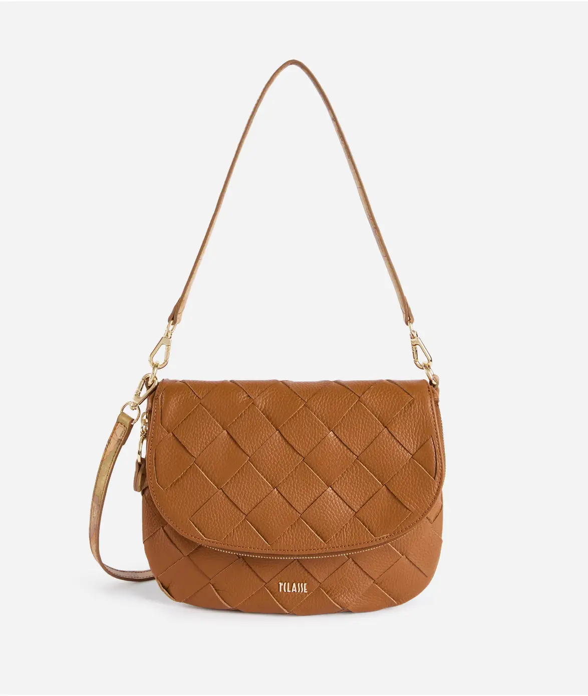 Novità di Collezione, la sottospalla Pura Leather unisce il fascino della pelle granata con lavorazione a intreccio a una praticità innovativa: lo scomparto principale è capiente e la patta con magnete è provvista di una zip che consente l'accesso a una tasca posteriore, sfruttando al meglio il volume della borsa. I dettagli in oro chiaro della zip e del logo 1ᴬ Classe impreziosiscono il modello, dotato di una tracolla e uno spallaccio rimovibili in eco-nappa stampa Geo Classic per alternare la portabilità da sottospalla a crossbody. L'effetto finale è morbido e rilassato con dettagli che elevano il look, rendendo la borsa un must-have della stagione.