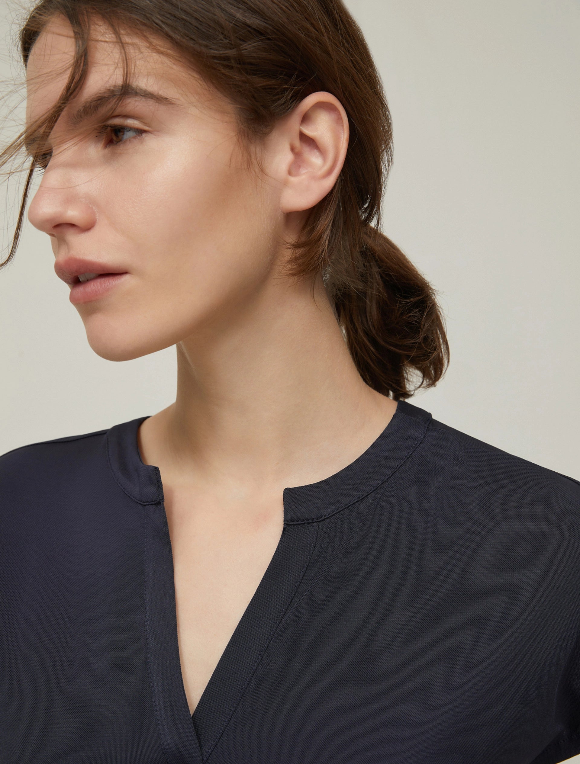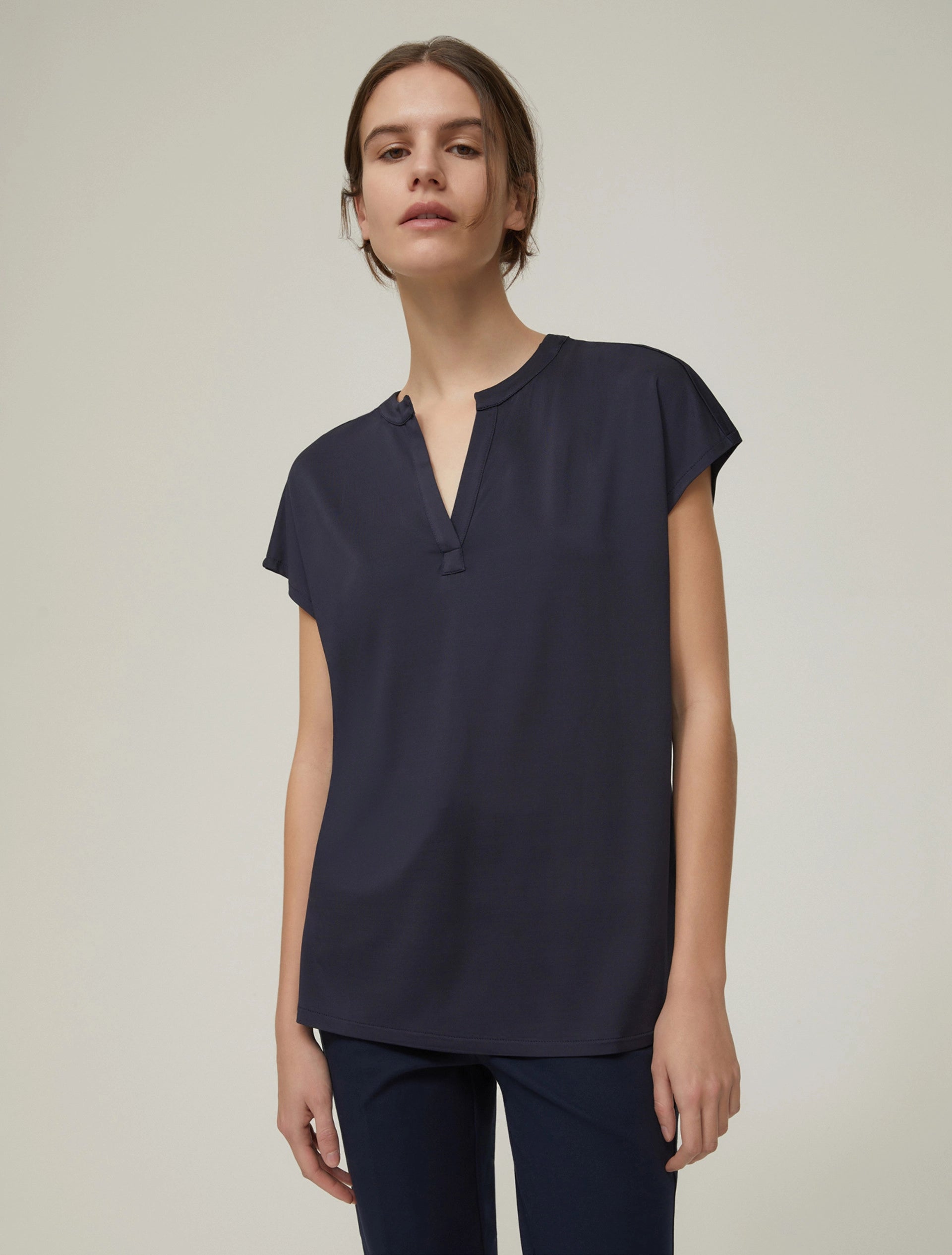 Minimal chic, la T-shirt in jersey piqué fluido è un passe-partout per infiniti mix & match quotidiani.