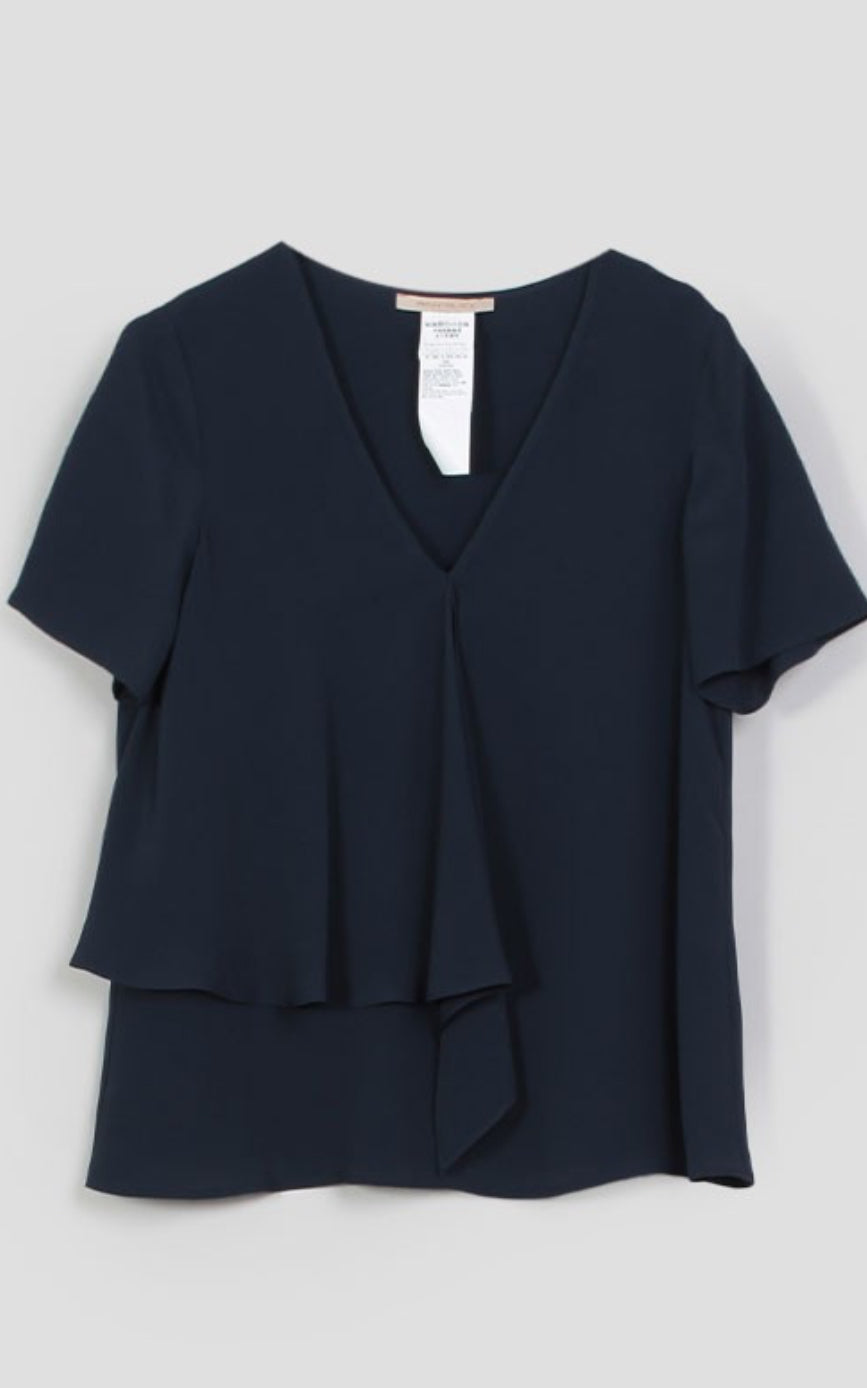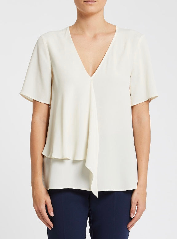 Top, realizzato in pregiato raso di seta stretch dal design essenziale con linee dritte che sfiorano il corpo. Scollo a V e maniche corte. Chic passe-partout, è perfetta per infiniti abbinamenti, dal suit elegante ai jeans. Composizione: 86%Acetato14%Seta
